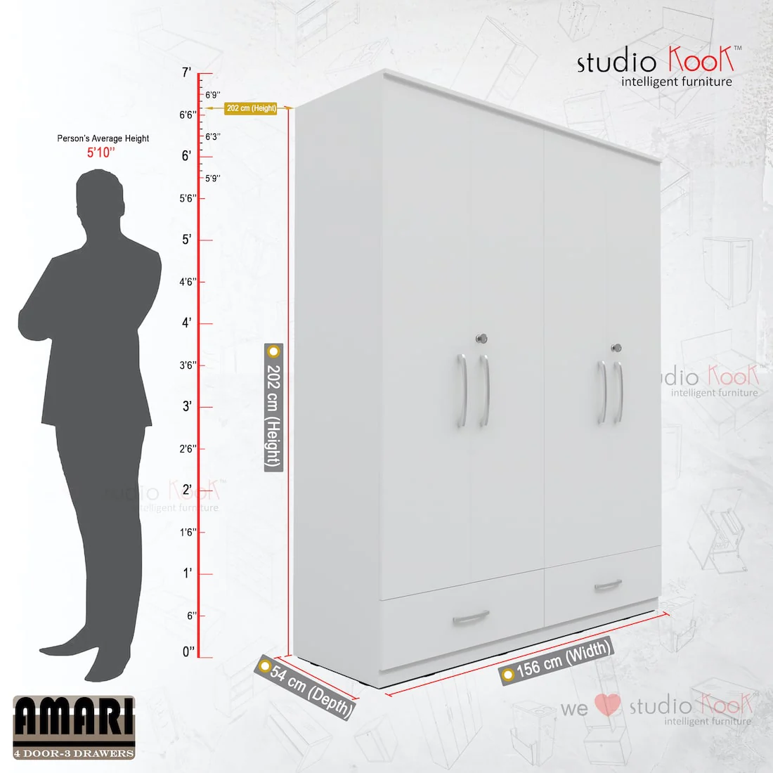 Amari 4 Door 3 Drawer Wardrobe