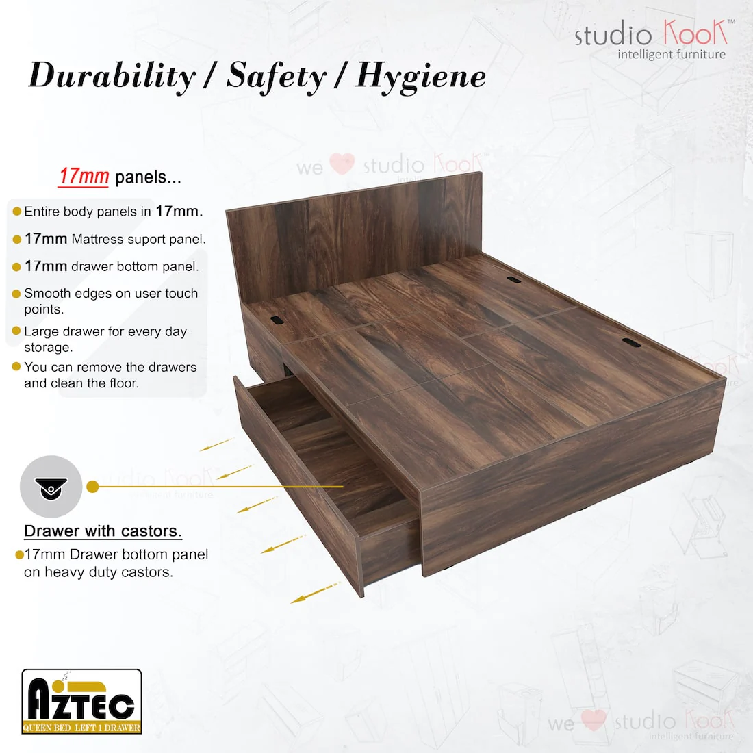 Aztec Left Queen Bed with One Drawer on Left—