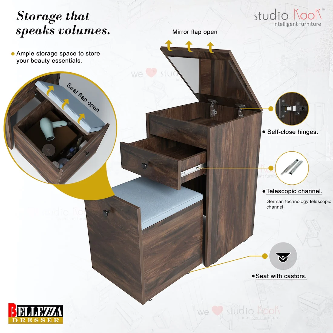 Bellezza Dresser Unit / Dressing Table with Mirror—
