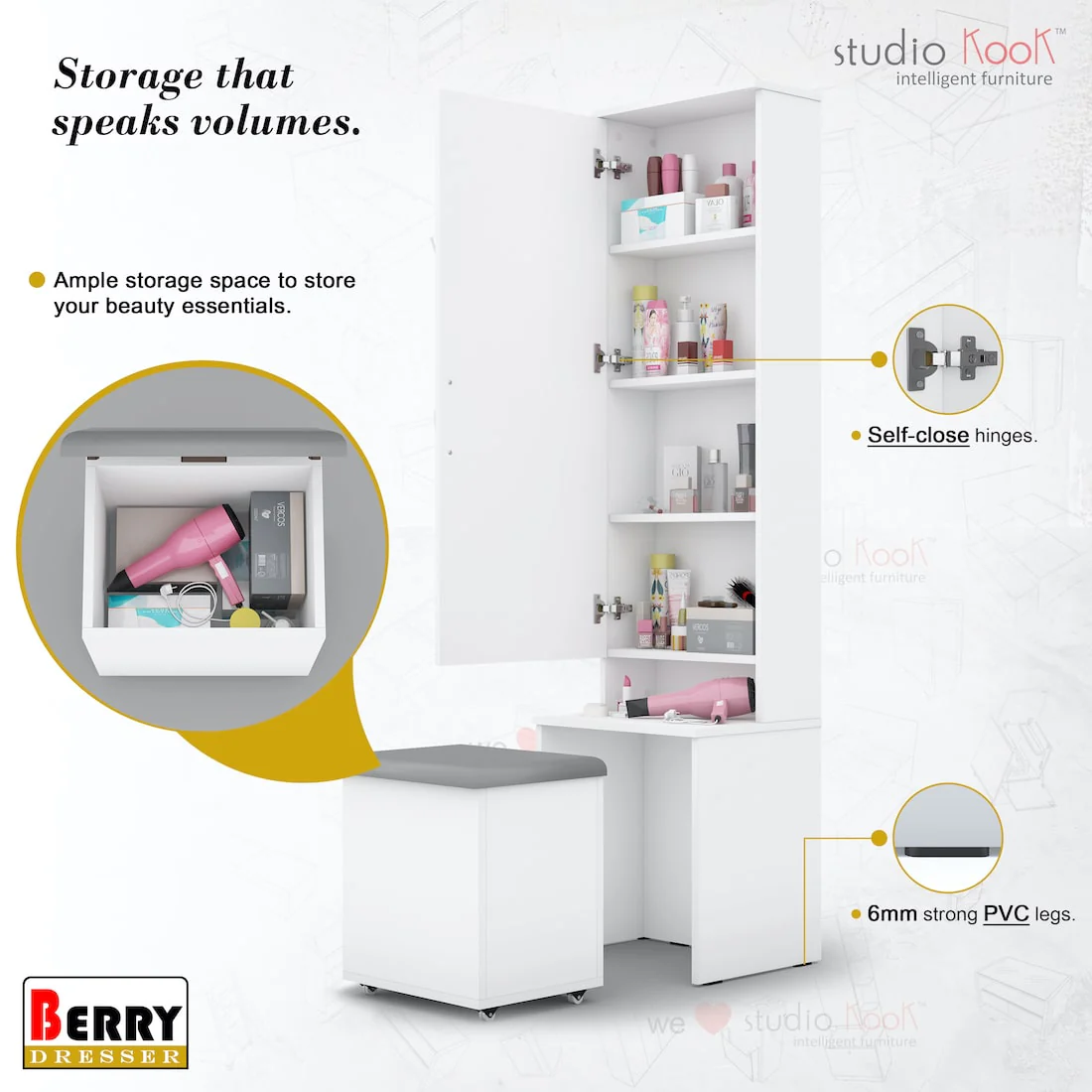 Berry Dresser Unit / Dressing Table with Mirror & Seating