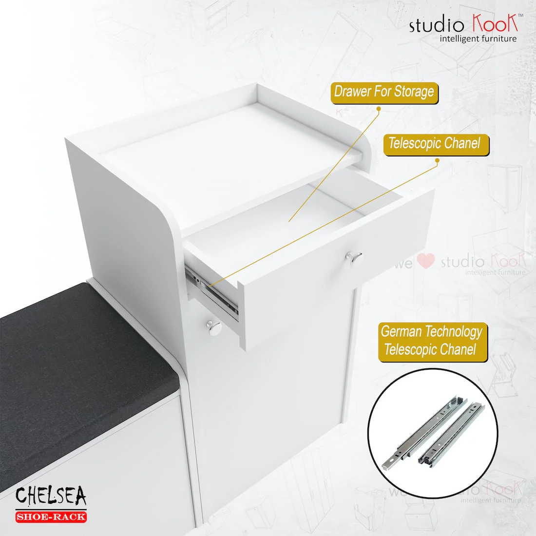 Chelsea Shoerack - 20 pairs capacity Shoe Cabinet with Cushion Seating